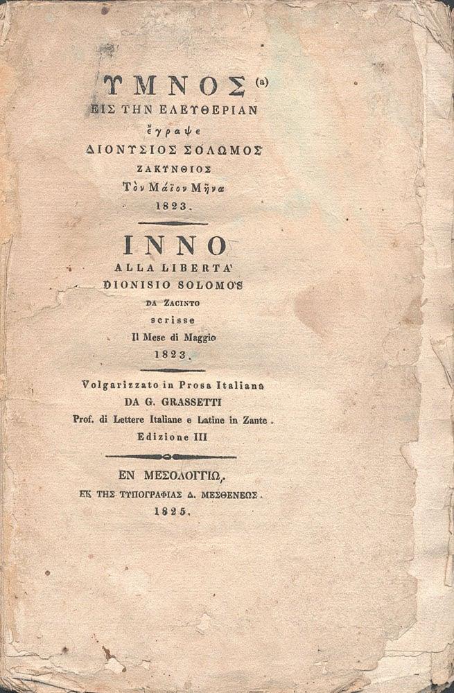 Οι πρώτες δύο στροφές του Ύμνου εις την Ελευθερίαν του Διονυσίου Σολωμού, αποτελούν από το 1865 τον εθνικό μας ύμνο.