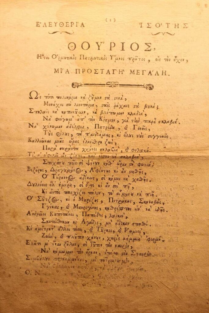 Ο Θούριος, γράφτηκε από τον Ρήγα Φεραίο-Βελεστινλή το 1797.