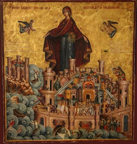 «Πρὸς τὴν Παναγία, πρὸς τὴν Ὑπέρμαχο Στρατηγό, ἀποτείνεται τὸ θαυμάσιο βυζαντινὸ τροπάρι «Τὴ ὑπερμάχω Στρατηγῷ», ποὺ στὴν πραγματικότητα εἶναι ὁ ἐθνικὸς ὕμνος τοῦ ἀγωνιστικοῦ Βυζαντίου.
