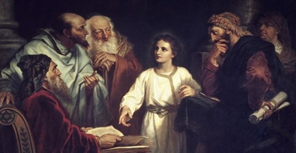Ο Ευαγγελιστής Λουκάς, μας χαρίζει το περιστατικό του δωδεκάχρονου Ιησού που άφησε τους γονείς Του (οι οποίοι τον έψαχναν επί τρεις μέρες) για να βρεθεί με τους διδασκάλους της Ιερουσαλήμ, με τους οποίους κάθισε και διαλεγόταν: «καὶ ὅτε ἐγένετο ἐτῶν δώδεκα, ἀναβάντων αὐτῶν εἰς Ἱεροσόλυμα κατὰ τὸ ἔθος τῆς ἑορτῆς καὶ τελειωσάντων τὰς ἡμέρας, ἐν τῷ ὑποστρέφειν αὐτοὺς ὑπέμεινεν Ἰησοῦς ὁ παῖς ἐν Ἱερουσαλήμ, καὶ οὐκ ἔγνω Ἰωσὴφ καὶ ἡ μήτηρ αὐτοῦ. νομίσαντες δὲ αὐτὸν ἐν τῇ συνοδείᾳ εἶναι ἦλθον ἡμέρας ὁδὸν καὶ ἀνεζήτουν αὐτὸν ἐν τοῖς συγγενέσι καὶ ἐν τοῖς γνωστοῖς· καὶ μὴ εὑρόντες αὐτὸν ὑπέστρεψαν εἰς Ἱερουσαλὴμ ζητοῦντες αὐτόν. καὶ ἐγένετο μεθ᾿ ἡμέρας τρεῖς εὗρον αὐτὸν ἐν τῷ ἱερῷ καθεζόμενον ἐν μέσῳ τῶν διδασκάλων καὶ ἀκούοντα αὐτῶν καὶ ἐπερωτῶντα αὐτούς· ἐξίσταντο δὲ πάντες οἱ ἀκούοντες αὐτοῦ ἐπὶ τῇ συνέσει καὶ ταῖς ἀποκρίσεσιν αὐτοῦ.»[1]